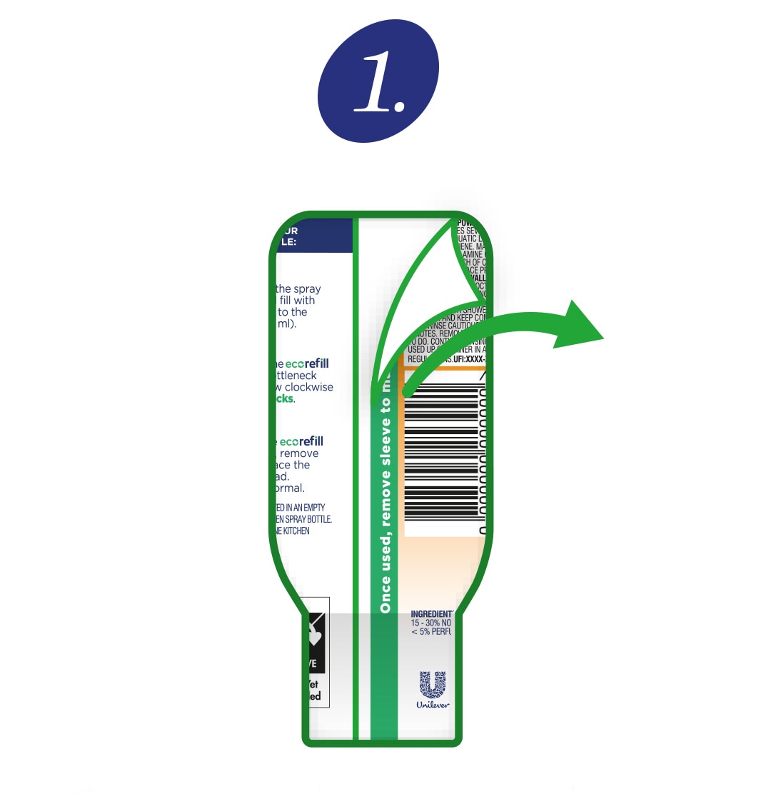 | پس از استفاده، فیلم را در امتداد سوراخ بردارید | شارژ مجدد Cif EcoRefill شما 100% قابل بازیافت است.